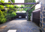 Nádvorie domu je vydláždené, tvorí ho átrium s pergolou, garážou pre 2 autá, kancelária, dielňa, práčovňa, kotolňa a pivnica.
