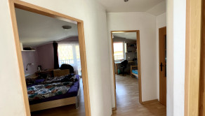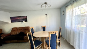 V dolnej časti sa nachádza toaleta, obývačka s fungujúcim krbom, kuchyňa a jedáleň. Na poschodí sú 3 izby, jedna so šatníkom, priestranná, zaujímavo riešená kúpeľňa a samostatná toaleta.