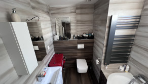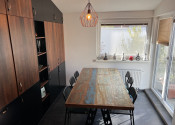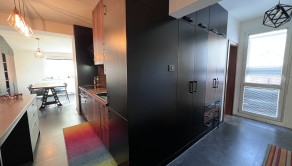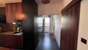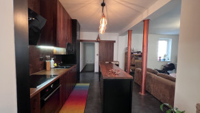 Veľmi zaujímavo riešený 2i byt nachádzajúci sa na Mraziarenskej ulici jednoznačne ocenia aj najnáročnejší klienti. Samotný byt má krásnych 56 m2 s vkusným dizajnovým nábytkom na mieru, vkusne pôsobiaci s čistými líniami. K tomu veľká a priesrtanná terasa 90m2 pozdĺž celého bytu, pričom východ na ňu je len z chodby. Orientácia je v podstate na všetky svetové strany. Východ slniečka Vás zastihne v spálni, z ktorej je momentálne spravený šatník (v prípade predaja sa dá do pôvodného stavu), slniečko pokračuje do obývačky a jedálne a poobede prechádza na terasu, pričom v byte je veľmi príjemná klíma. Byt s jedinečnou atmosférou, ktorý vás uchváti hneď na prvý dojem. Veľkou výhodou je aj oddelená denná a nočná časť.