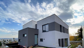 V dome sú osadené kvalitné HLINÍKOVÉ OKNÁ a posúvny systém HS portál. Vonkajšie žalúzie hliníkové. Parkovanie pre 3 autá.